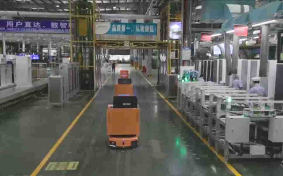 为车载冰箱物流配送打造的智能解决方案,,,,包含产中物流通过潜伏举升AMR搬运至线边,,,产后成品物流智能仓储,,,流程包含产中物流智能齐套入库,,线边安灯叫料AMR智能配送至线边,,,成品入库、、、、出库,,,通过无人堆高车机器人,,,,智能仓储管理替代人工作业管理,,,,实现更高存储、、更高效率、、、、更具柔性化的解决方案。。。